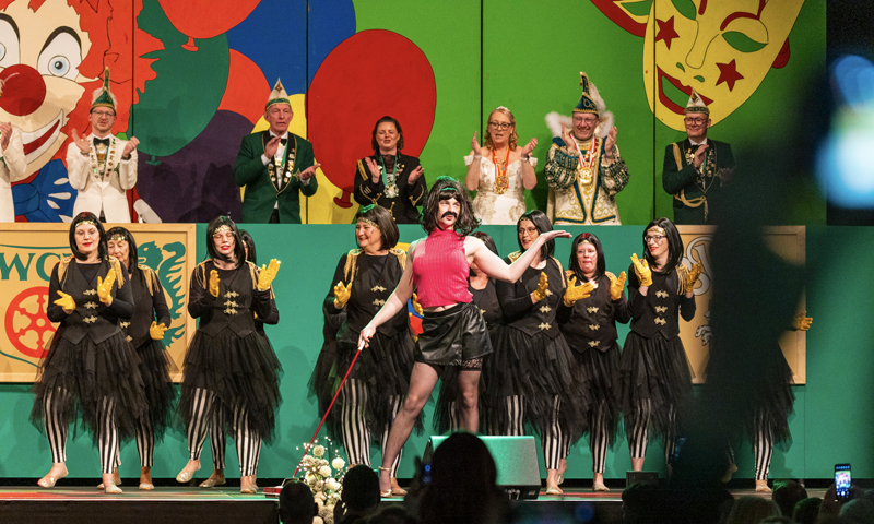 Letztes Jahr kann man nicht toppen? Doch kann man ! Was für Highlights – was ein Feuerwerk! Abwechslungsreich, unterhaltsam und extrem kurzweilig – das Publikum in der restlos ausverkauften Stadthalle kam kaum hinterher. Die Zeit verging wie im Flug, ein Programmhöhepunkt jagte den nächsten. Egal ob Tanzgarden, Solo-Mariechen, Bauchredner, Komiker oder Musikkapellen – alle wussten zu überzeugen und bereiteten dem Publikum einen unvergesslichen Abend. Genau, was man von einer Prunksitzung erwartet. (Bilder: Niklas Franke)
